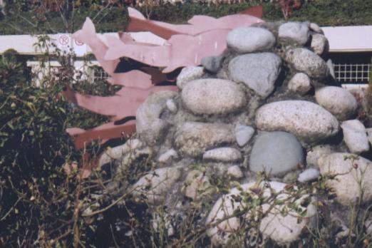 Sheet metal, river rock, concrete, paint