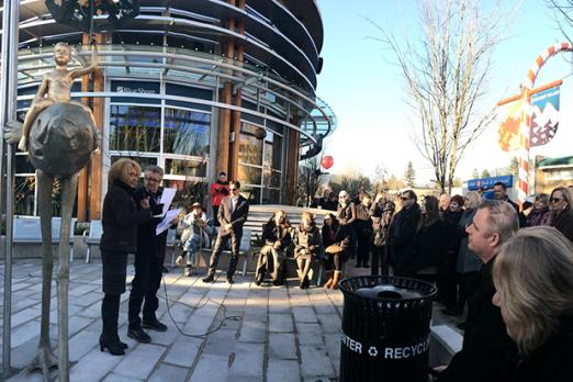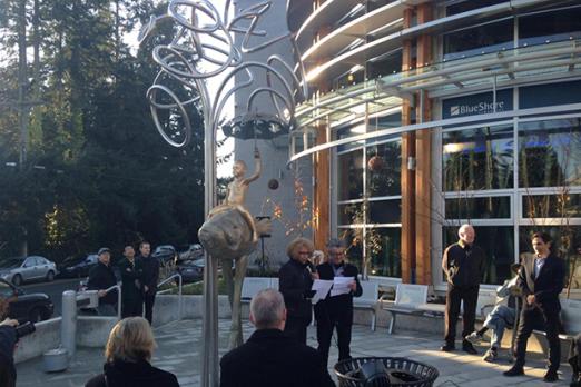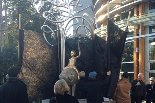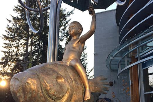 From generation to generation, traditions, knowledge and responsibilities are passed from father to son, mother to daughter, mentor to prodigy, to continue to hope and strive to build a better earth, a better humanity. Past, present and future in Vancouver are inextricably tied to its oceans and mountains. They are tied to its valleys, rivers and lakes, to its fresh and salt waters, to its port and vessels, to its communities and its reach out to the world. From Capilano River to Edgemont Village and beyond… on his dragon-fish-bird-mammal the Life Protector moves keeping vigil. Armed with the powers of all four earth elements, earth and air, fire and water, the duo’s posed to roam from the highest peak, to the deepest ravine protecting the environment for the future generations.