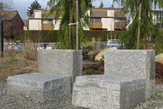 ‘Living Ruin' is a low-to-the-ground, free-form, geometric shape constructed of split granite. It forms a semi-enclosed, safe place for play and resembles a living room.